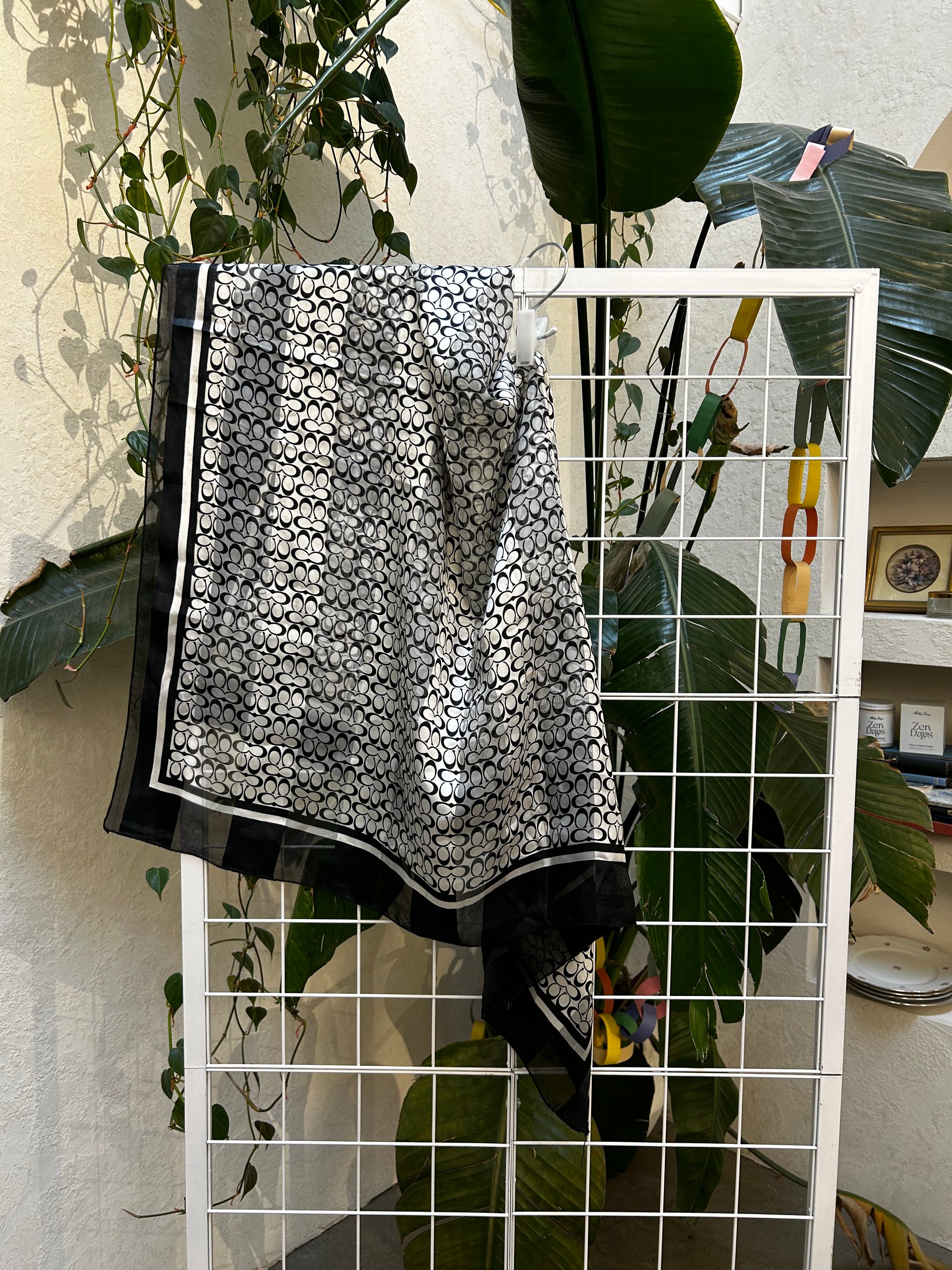 "Coach" Black and White Satin Square Scarf